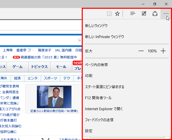 Microsoft Edgeのメニューは、Windows 10に合わせたフラットデザインになり、タッチ操作でも選択しやすくなっています。一方のInternet Explorerは、従来のWindowsアプリケーションで見慣れたメニューです。
