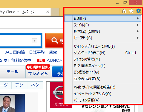 右上の[ツール]ボタンをクリックすると表示されるメニューです。ここから、印刷や拡大/縮小などのさまざまな機能を実行します。