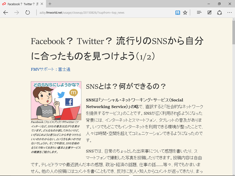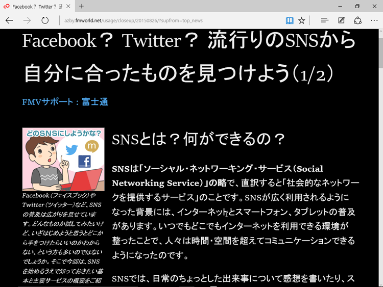 Microsoft Edgeが対応しなくなった技術がある一方で、Microsoft Edgeで新しく搭載された機能もあります。それが「Webノート」です。また、Windowsストア版のInternet Explorerだけに用意され、デスクトップ版のInternet Explorer にはなかった「読み取りビュー」も、新たにMicrosoft Edgeに追加されました。