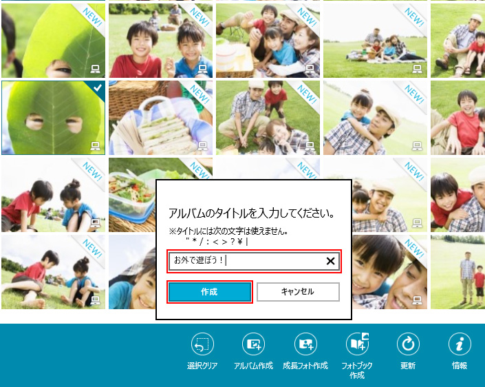 アルバムのタイトルを入力して、「作成」をクリックします。