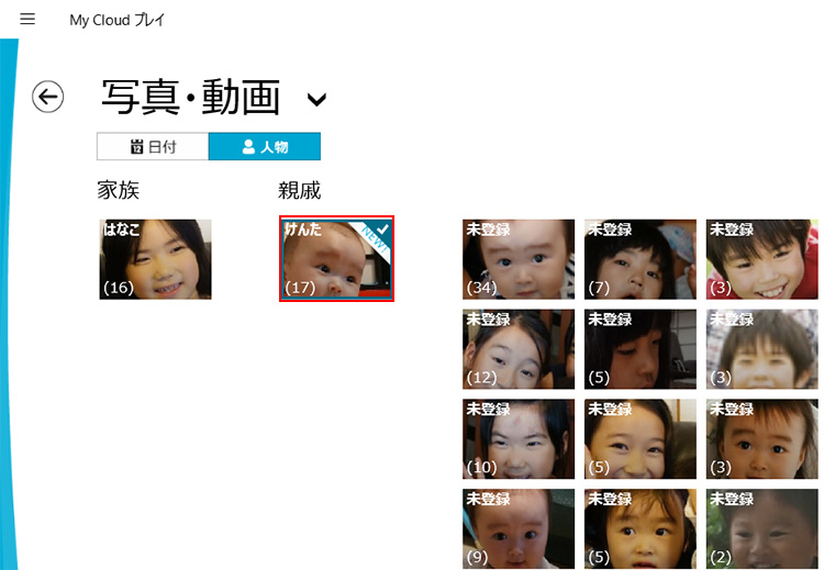 アルバムを作りたい人物を右クリックして選びます。なお、あらかじめ人物を登録しておく必要があります。