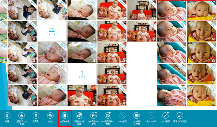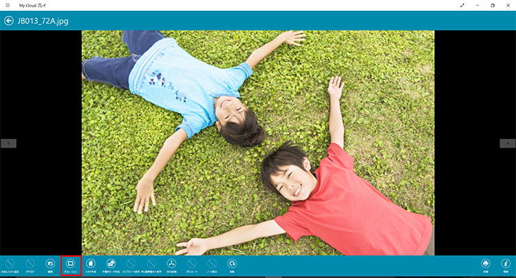 My Cloud プレイで写真を選択して、「ハガキ作成」ボタンをクリックします。