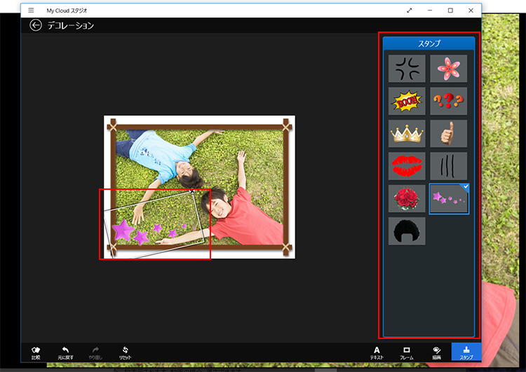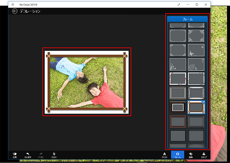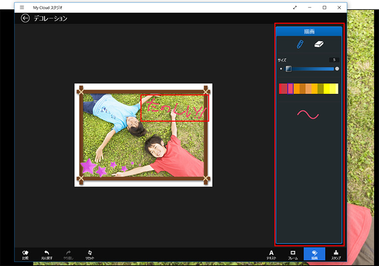 パソコンに取り込んだ写真をフレームやスタンプでデコレーションしたり、組み合わせてコラージュを作ったりして、さらに楽しむことができます。「My Cloud スタジオ」の編集機能を使ってみましょう。