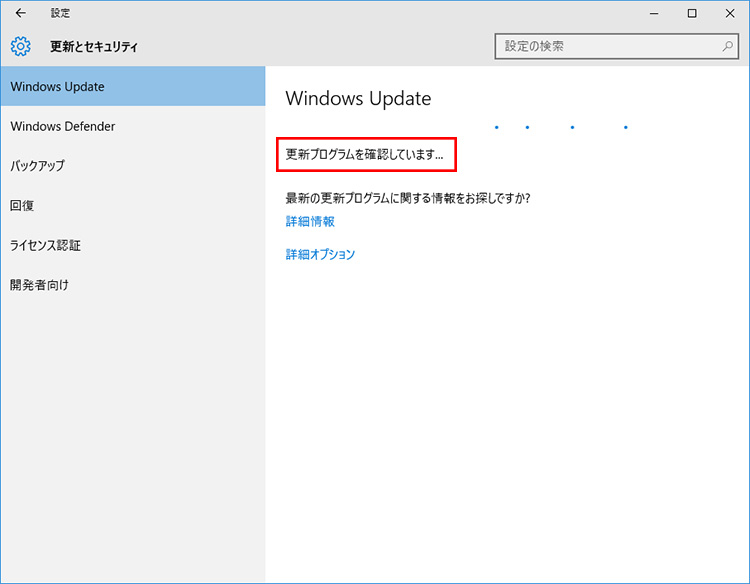 「更新プログラムを確認しています…」と表示されるので、そのまましばらく待ちましょう。