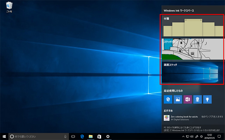 (注)Windows Inkは、一部の機種でご利用になれます。