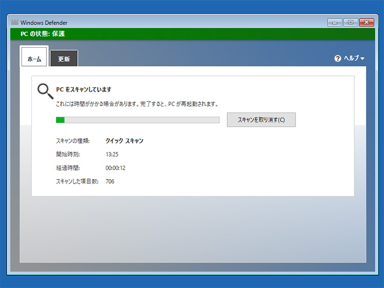 パソコンが再起動し、Windowsが起動する直前にオフラインスキャンが実行されます。Windows起動中には駆除できなかったやっかいなウイルスやマルウェアに対応できるのがメリットです。