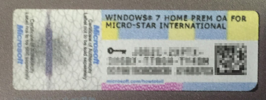 パソコン本体に貼られたMicrosoft COA(Certificate of Authenticity)ラベルにプロダクトキーが書かれている場合もあります。