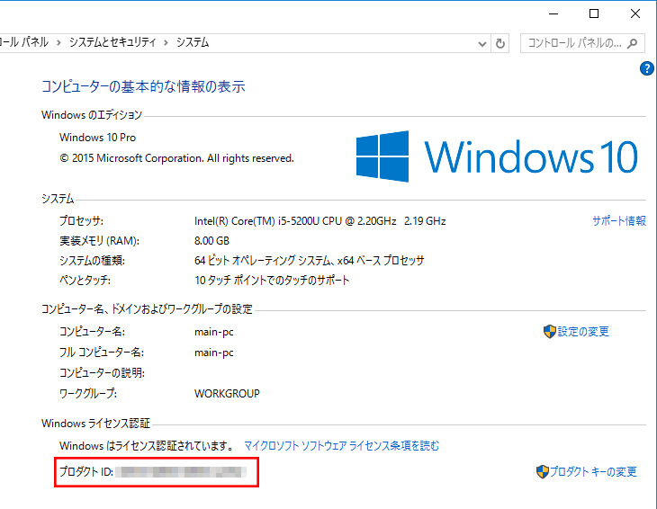 Windowsでは、コントロールパネルの[システムとセキュリティ]で[システム]を選択すると、現在利用しているWindowsの「プロダクトID」を確認できます。これは、インストール後に割り当てられた英数字のことで、プロダクトキーとは異なります。プロダクトIDは、マイクロソフト社のサポートを受ける際などに必要になります。