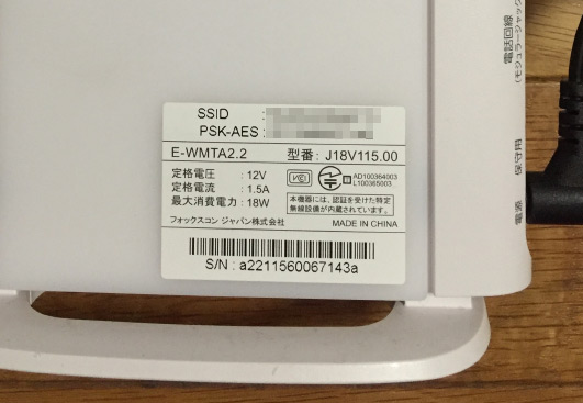 セキュリティキーは、ほとんどの場合、Wi-Fiルーター本体に貼られたラベル等に書かれています。書かれていない場合は、製品同梱の書類などを確認してください。なお、製品によっては、「PSK-AES」のように暗号化の方法に続けてセキュリティキーが書かれている場合もあります。