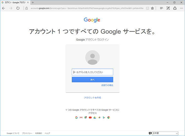 Googleのサインイン画面。アカウント情報を失ってしまうと、サービスを利用することができなくなります。
