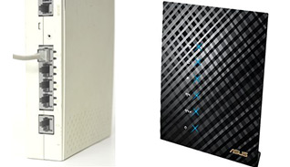 有線接続のネットワークルーター(左)と無線LANルーター(右)。