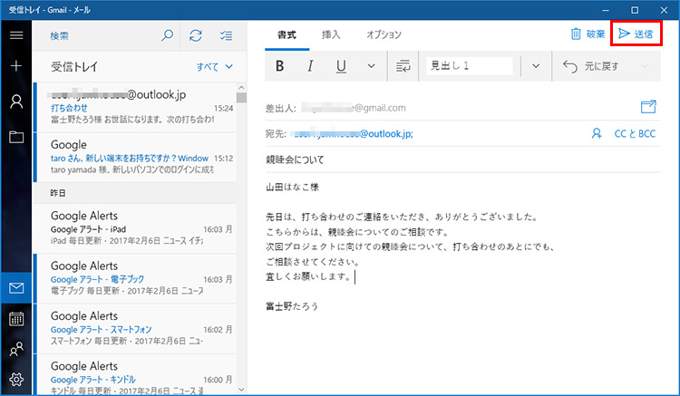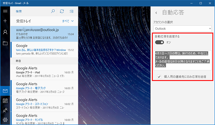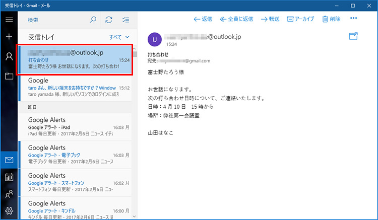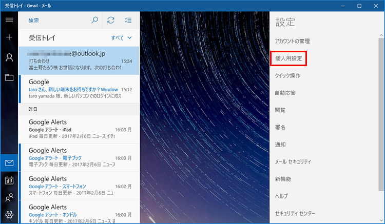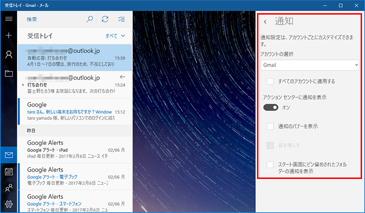 Windows 10の「メールアプリ」でOutlookいらず?