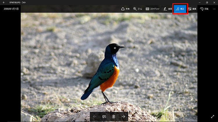 「補正」をクリックすると、色や明るさなどが自動補正されます。