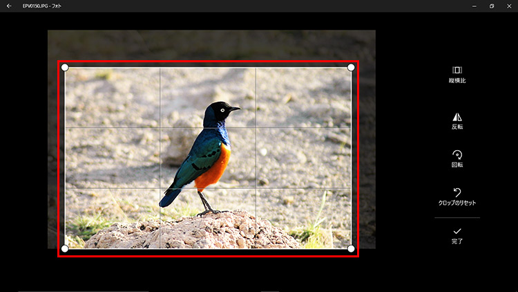 「クロップと回転」をクリックし、画像の周囲をドラッグすれば切り抜くことができます。