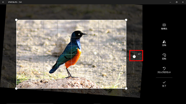 画像の右側の●をドラッグすることで、画像を好きな角度に回転することができます。