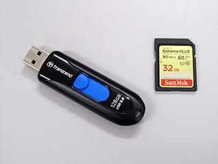 USBメモリ(左)とSDカード(右)