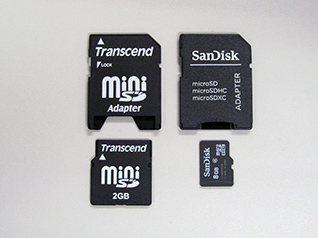 miniSDカード用の変換アダプターとmicroSDカード用の変換アダプター