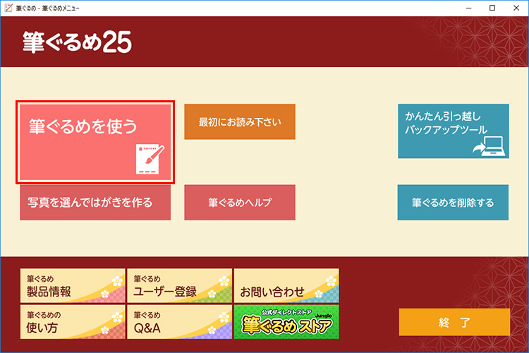 「筆ぐるめメニュー」が表示されるので、「筆ぐるめを使う」をクリックします。