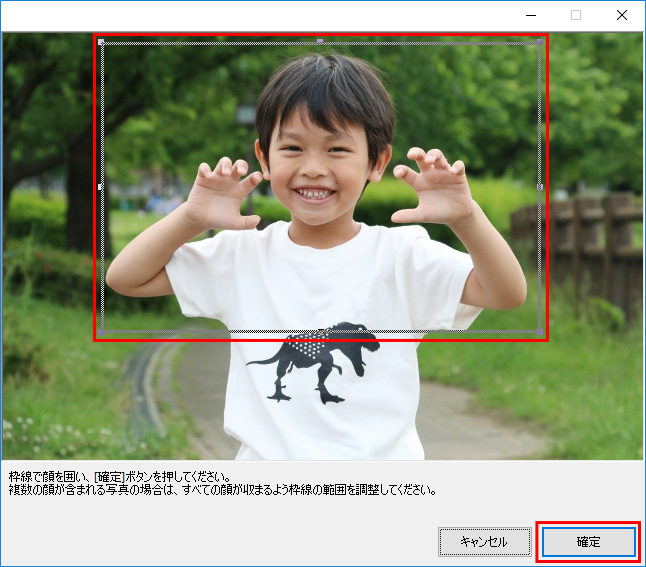 写真の表示したい部分まで枠線を広げ、「確定」をクリックします。