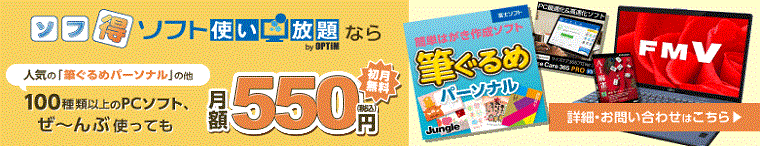 筆ぐるめの最新バージョン「筆ぐるめ27 パーソナル」をご利用になるには、『ソフト使い放題』がおすすめです。
