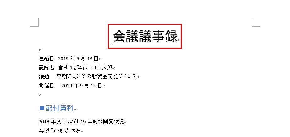 Ctrl+Eキーを押すと、文字がセンタリングされます。
