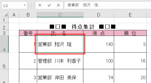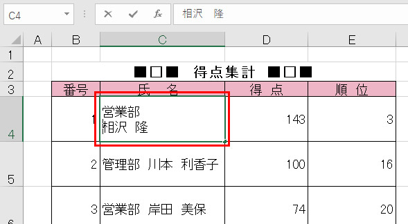 入力中、Enterキーを押すと次のセルに移動してしまいますが、Alt+Enterキーを押せば、セル内で改行することができます。