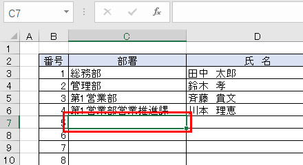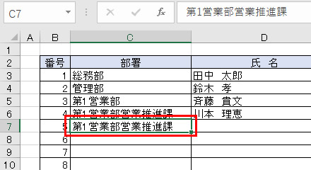 データをコピーしたいセルにカーソルを置き、Ctrl+Dキーを押します。