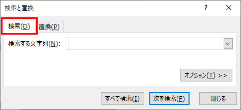 Ctrl+Fキーを押した状態。[検索]タブが開いた状態で[検索と置換]ダイアログボックスが開きます。
