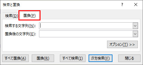 Ctrl+Hキーを押すと、[置換]タブが開いた状態で[検索と置換]ダイアログボックスが開きます。