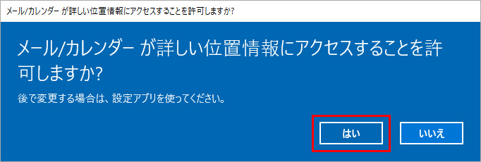 初めて起動する際に、位置情報へのアクセスの許諾を求める画面が表示されることがあります。この画面が表示された場合は、「はい」をクリックして手順を進めます。