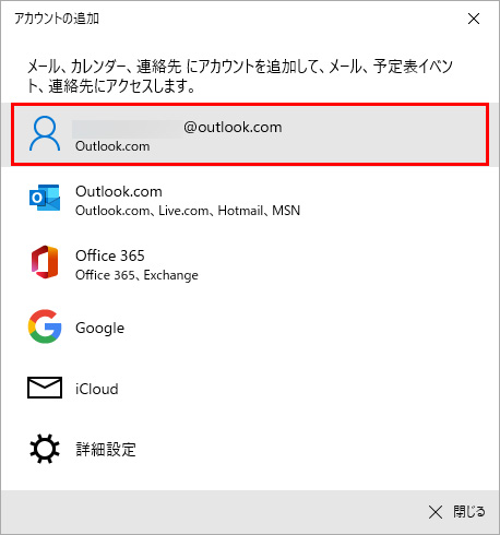 「アカウントの追加」をクリックして「アカウントの追加」画面を表示します。