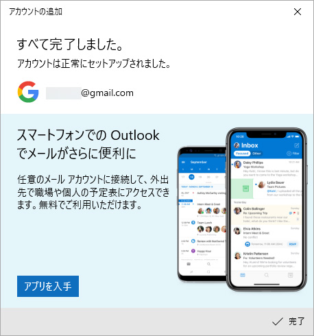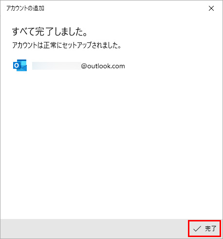 「完了」をクリックすると、マイクロソフトアカウントへのログインが完了します。