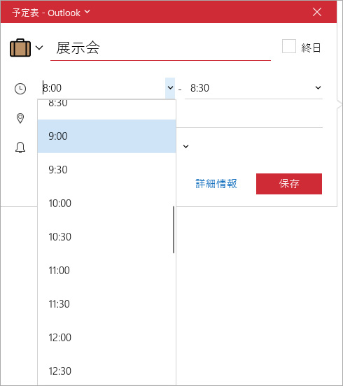 イベントの開始時間を選択し、同様に終了時間も選択します。