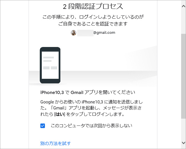 2段階認証を設定している場合はこの画面が表示されるので、表示された手順に従って本人確認を実行します。
