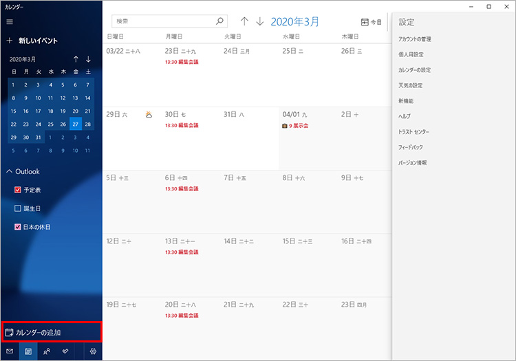 Windows 10のカレンダー機能を使ってみよう