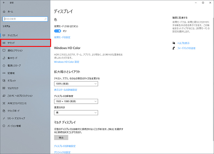 左のメニューから[サウンド]をクリックします。