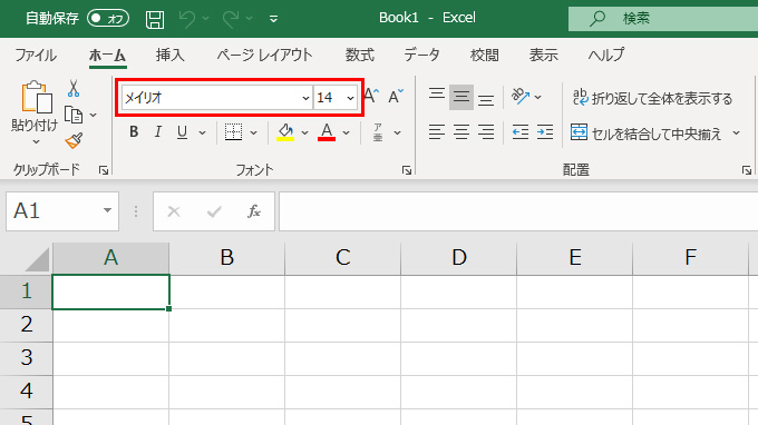 新規作成すると、通常のフォントは「游ゴシック」、サイズは「11」ポイントになっています。