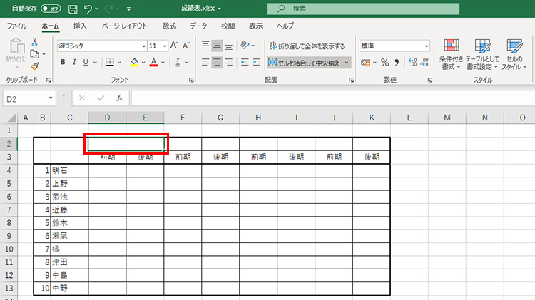 表の見出しなど、複数のセルにまたがって1つのデータを入力したい場合、複数のセルをまとめて1つのセルとして扱えるようにすることができます。