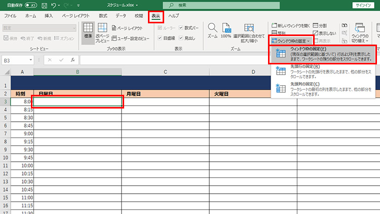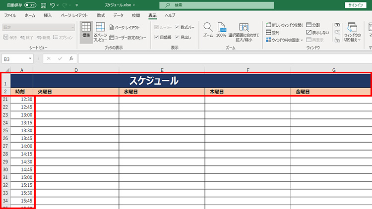 大きい表を作成している場合、スクロールをすると見出し部分が見えなくなってしまって困ることがあります。