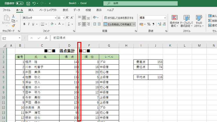 表に通常は見せなくて良い行や列がある場合は非表示にしておきましょう。非表示にした行や列は、印刷もされません。