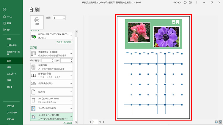 1ページに収めて印刷する