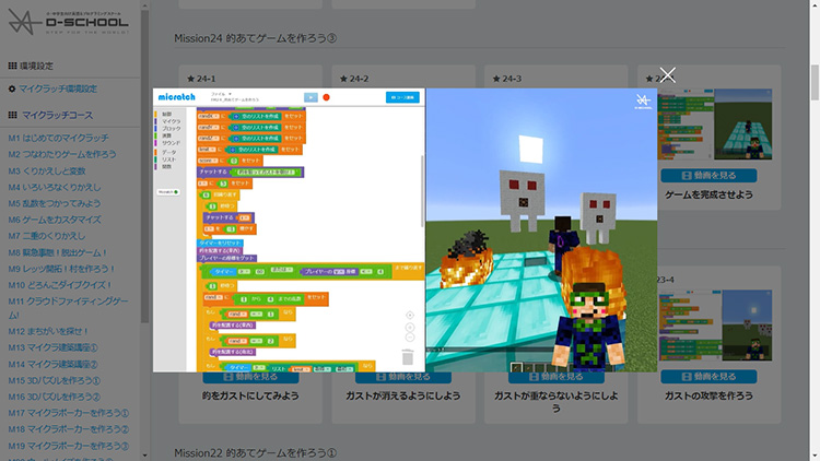 「マイクラッチ」や「スクラッチ」を使ったプログラミングで楽しみながらプログラミングを学べます。