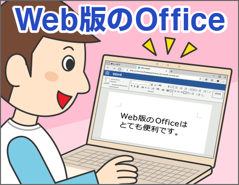 パソコンにOfficeがインストールされていなくても、ブラウザーを使用してWeb版Word、Excel、PowerPointなどを利用でき、データはインターネット上のストレージ「OneDrive」に保存されます。インターネットにつながればどこからでも、端末を選ばずアクセスできるなどの利点があります。
