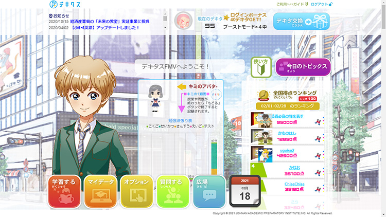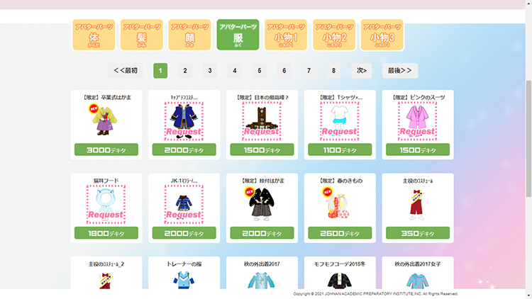 学習するたびに増える「デキタポイント」は、TOPページの「デキタ交換」からアバターパーツに交換することができます。