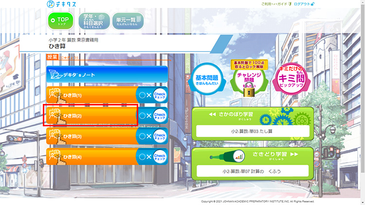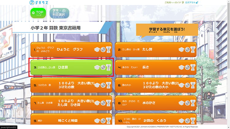 学習する単元を選択します。