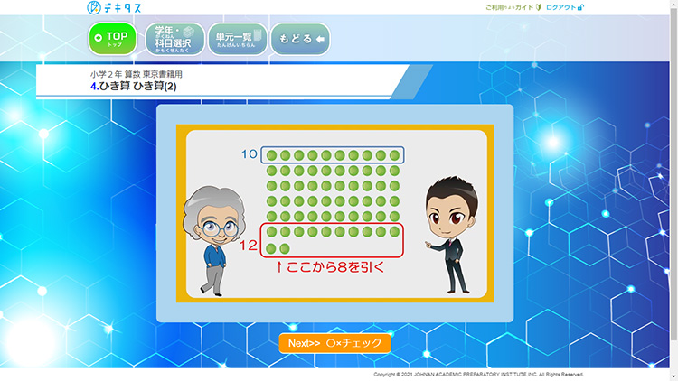 「デキタス」は、「城南予備校」「城南コベッツ」といった学習塾で構成される城南進学研究社グループの講師陣が監修している学習サービスで、ポイントを押さえた授業と選りすぐりの良問で、しっかり学習できるようになっています。