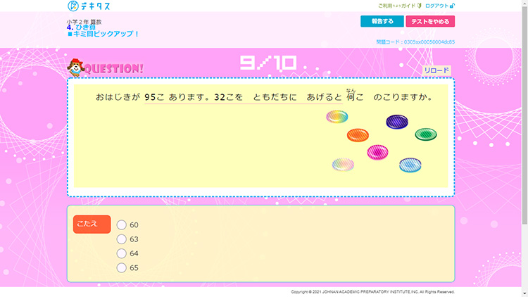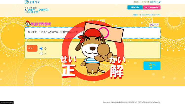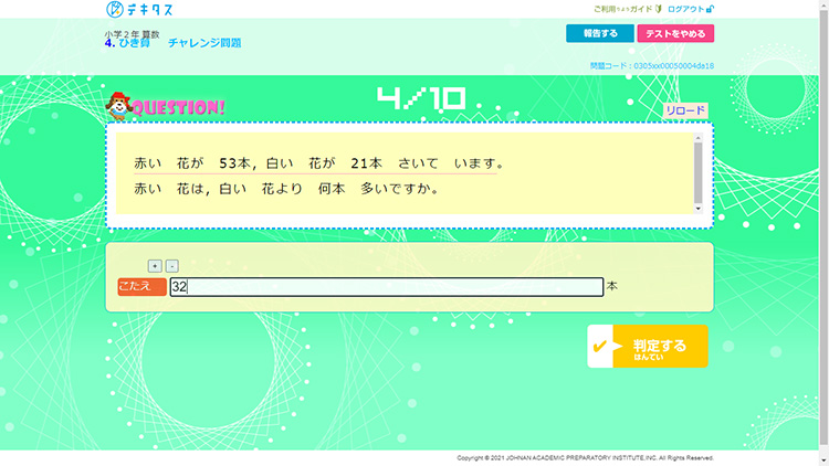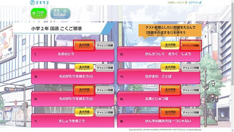「基本問題」で100点を取ると、応用問題である「チャレンジ問題」に挑戦できます。