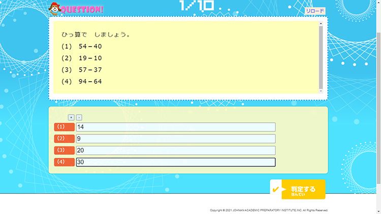 「基本問題」では、選択した単元についての問題が10問出題されます。問題には記述式のものもあります。