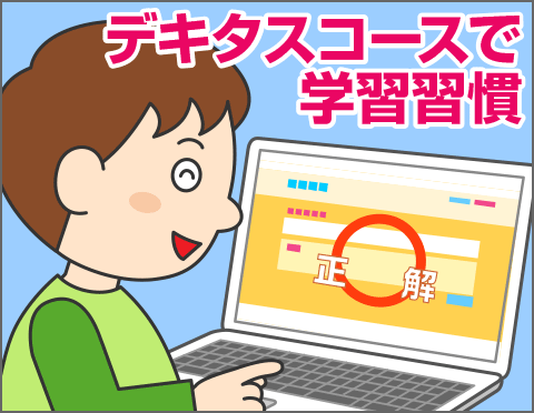 小学校から中学校のお子様向けの「学校教科・デキタスコース」では、学校で使っている教科書に沿った授業と演習問題を通して、学ぶ喜びを実感し、毎日の学習の習慣を身につけることができます。