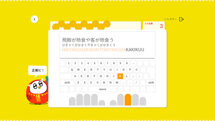 キーの場所、ホームポジションなど、タイピングの基本から学べます。